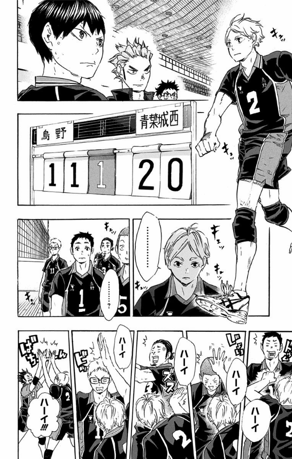 青葉城西との3回戦。苦戦する烏野は影山に代わり菅原を投入。誰よりもコートの外からチームを見続けた男の采配が、徐々に流れを引き寄せ始める! しかし、敵エース及川のサーブには攻略の糸口が見つからず!?
