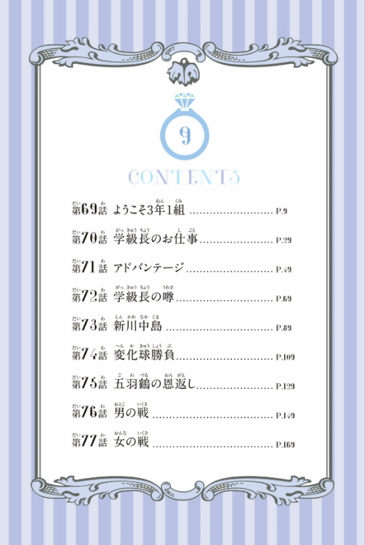 「落第寸前」「勉強嫌い」の美少女五つ子を、アルバイト家庭教師として「卒業」まで導くことになった風太郎。春休みが明け、新学期到来。無事3年生に進級した五つ子と風太郎は、なんと六人とも同じクラスに配属! 恋に勉強に学校行事!! 賑やかすぎる高校生活最後の一年が、幕を開ける──!! かわいさ500%の五つ子ラブコメ、フルカラー版第9巻!!