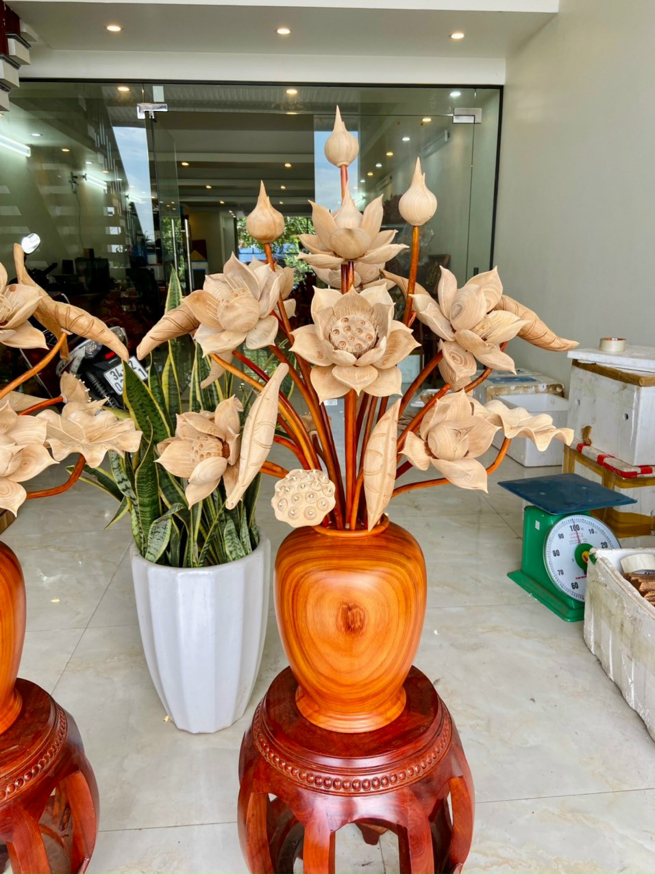 Bình hoa sen gỗ Ngọc am mùi cực thơm cao 1m2, wooden lotus
