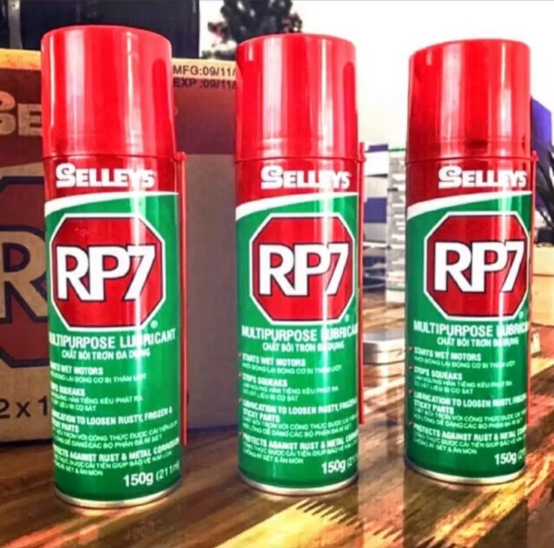 Dầu chống rỉ sét RP7 được cung cấp dưới dạng chai xịt đa dụng, có tác dụng chống rỉ (gỉ) sét, bôi trơn, bảo vệ kim loại chống ăn mòn,… Đây là một sản phẩm được tin dùng của Selleys (Úc), là một hỗn hợp gồm một loại dầu cao cấp dễ thấm nhờn, đươc chế tạo bằng công thức cải tiến và một hóa chất đậm đặc chống rỉ (gỉ) sét.