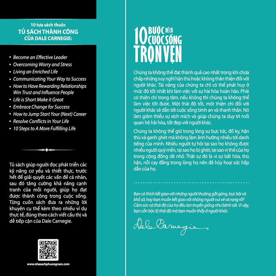Cho tới nay, Dale Carnegie và các hậu bối đã hướng dẫn chúng ta cách thức thông qua các khóa huấn luyện và những cuốn sách. 10 Bước Để Có Cuộc Sống Trọn Vẹn đã tổng hợp các nguyên tắc đó thành 10 bước nhằm giúp độc giả có được cuộc sống trọn vẹn hơn: