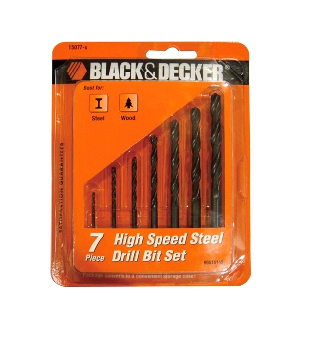 Mua tại TiktokThương hiệu: BLACK+DECKER (MỸ) Hộp mũi khoan kim loại 7 chi tiết Giới thiệu sản phẩm BLACK+DECKER - 15077G Hộp mũi khoan kim loại 7 chi tiết