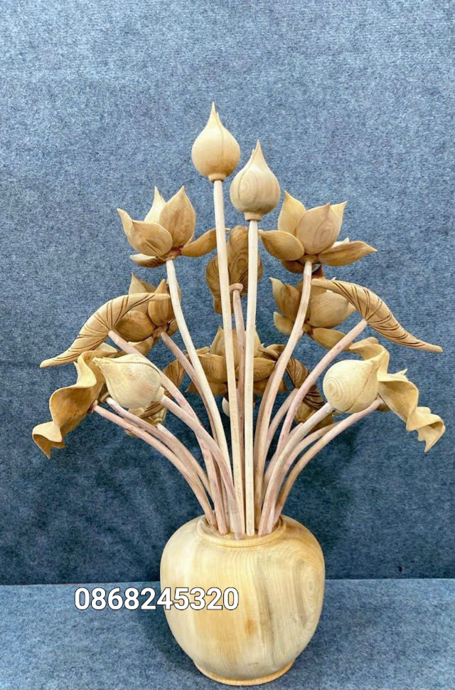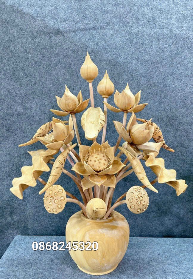 Bình Hoa Sen 21 Cành Gỗ Ngọc Am Thơm Nức Đẹp Giá Xưởng| Xưởng Tượng Gỗ Độc Đáo - 0938410333