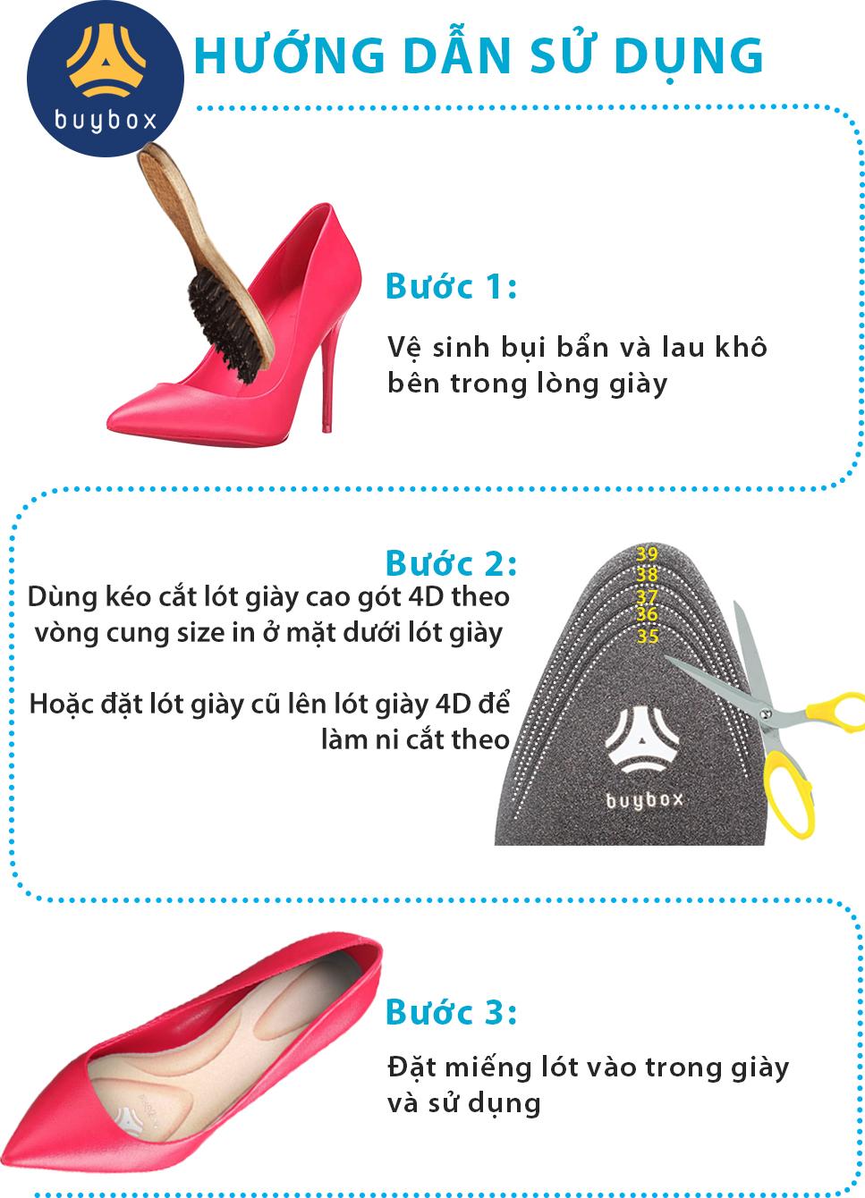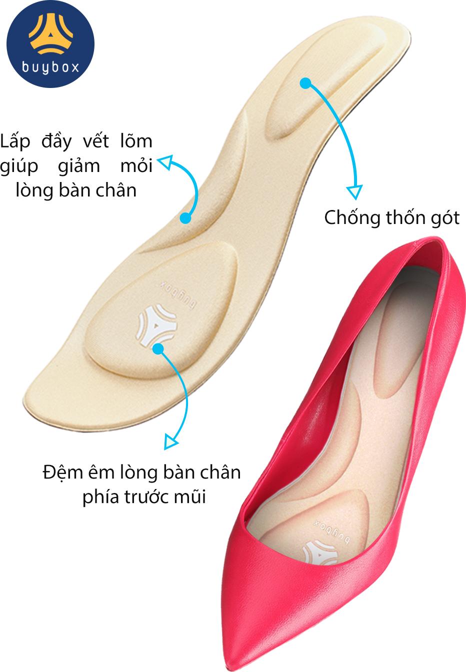 CÔNG DỤNG NỔI BẬT Lót giày nguyên bàn chân đa năng buybox là sự kết hợp giữa lót giày và lót giảm size giày. Lót mũi giày đệm êm ngón chân cũng có công dụng
