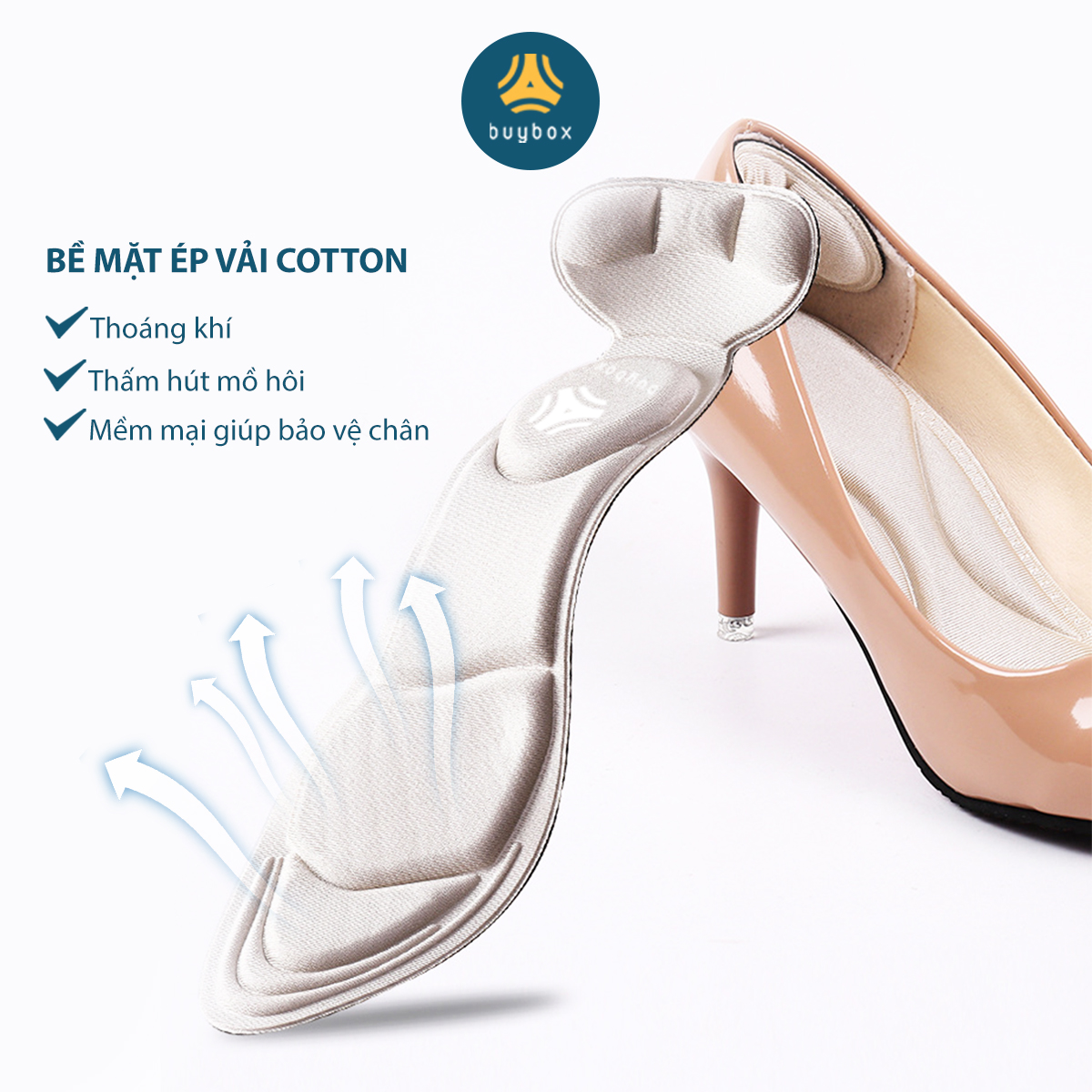 - Từ nay không còn phải lo lắng nữa vì đã có lót giày chống tuột gót, bảo vệ tuyệt đối gót chân của bạn. CÔNG DỤNG NỔI BẬT Lót giày đa năng chống rộng buybox là sự kết hợp giữa lót giày và lót chống trầy gót chân. Giúp chống rộng giày, giảm size. Giày rộng lót vào sẽ giúp mang vừa (giúp giảm rộng được 1 size giày). Giày đi lâu ngày, phần lót giày bị lún, lót vào đi êm chân hơn, thoải mái. Công dụng tuyệt vời: chống trầy gót sau bàn chân khi mang giày cao gót, giày búp bê; chống thốn gót chân; giảm đau gang bàn chân; mang lại cảm giác êm chân tuyệt đối. Sản phẩm thiết kế 4D, kết hợp 2 trong 1 vừa là lót chống rộng vừa bảo vệ bàn chân rất tiện dụng. Được làm từ chất liệu cao cấp rất êm chân, thoáng khí & bền bỉ. Mặt dưới miếng lót in các đường cong tương ứng các size 35 - 36 - 37 - 38 - 39 - 40. Dùng kéo cắt theo các đường cong này để có được kích thước cần sử dụng. Phần lót bọc gót sau có keo 3M để dán cố định vào sau giày. Lót giày đa năng sử dụng được cho nhiều loại giày khác nhau như: giày cao gót, giày búp bê, giày mọi, giày lườ THÔNG TIN SẢN PHẨM