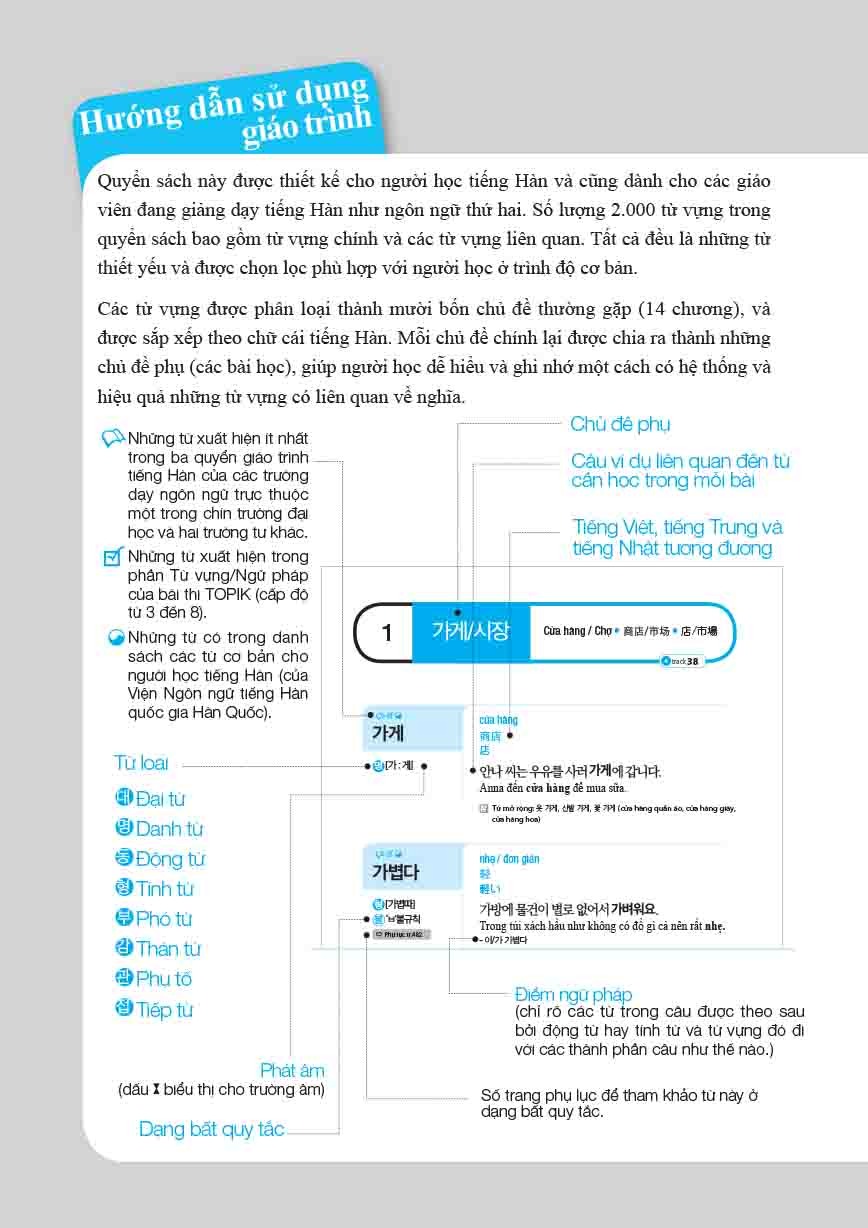 - Sách “2.000 Từ vựng tiếng Hàn thiết yếu dành cho người mới bắt đầu” được thiết kế cho người học tiếng Hàn, các giáo viên giảng dạy tiếng Hàn như ngôn ngữ thứ hai.