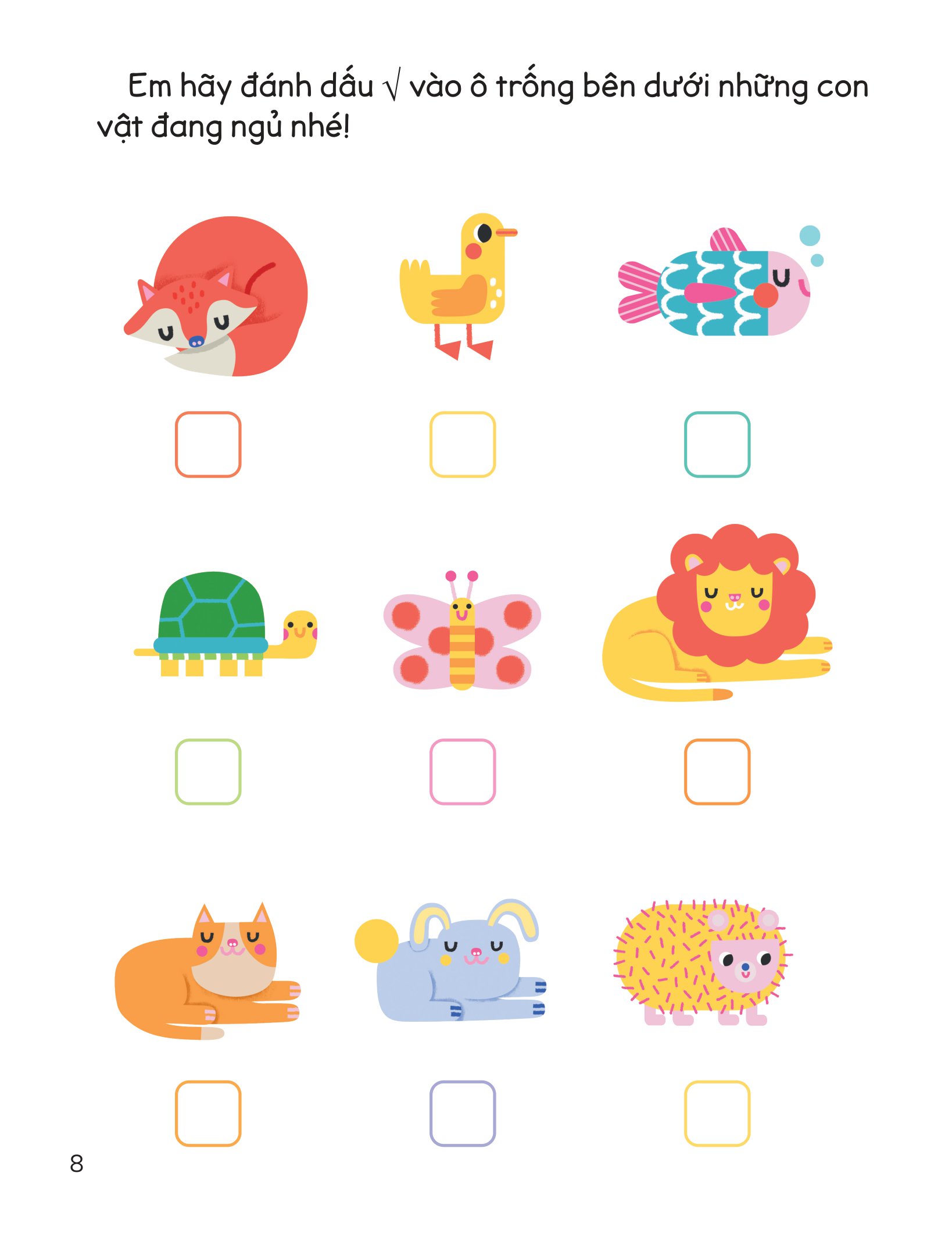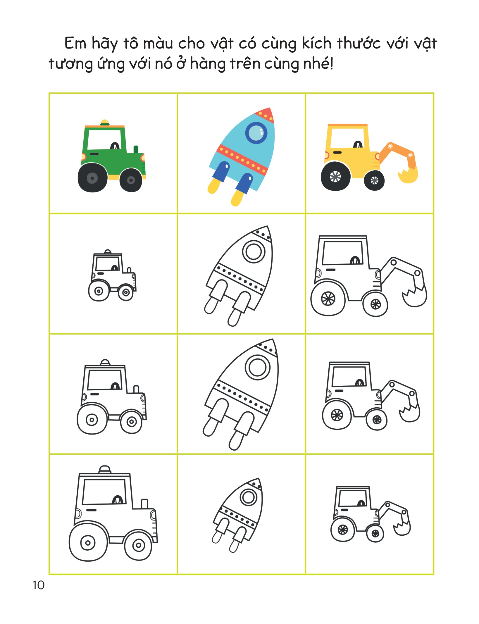 GHÉP CẶP: hoặc nhóm lại các đối tượng tương tự nhau, giống hệt nhau hoặc liên quan đến nhau…   Đồng thời, các hoạt động trong sách cũng kích thích trí não của em, giúp em phát triển nhận thức thị giác, kỹ năng vận động tinh và sự phối hợp tay-mắt đấy.