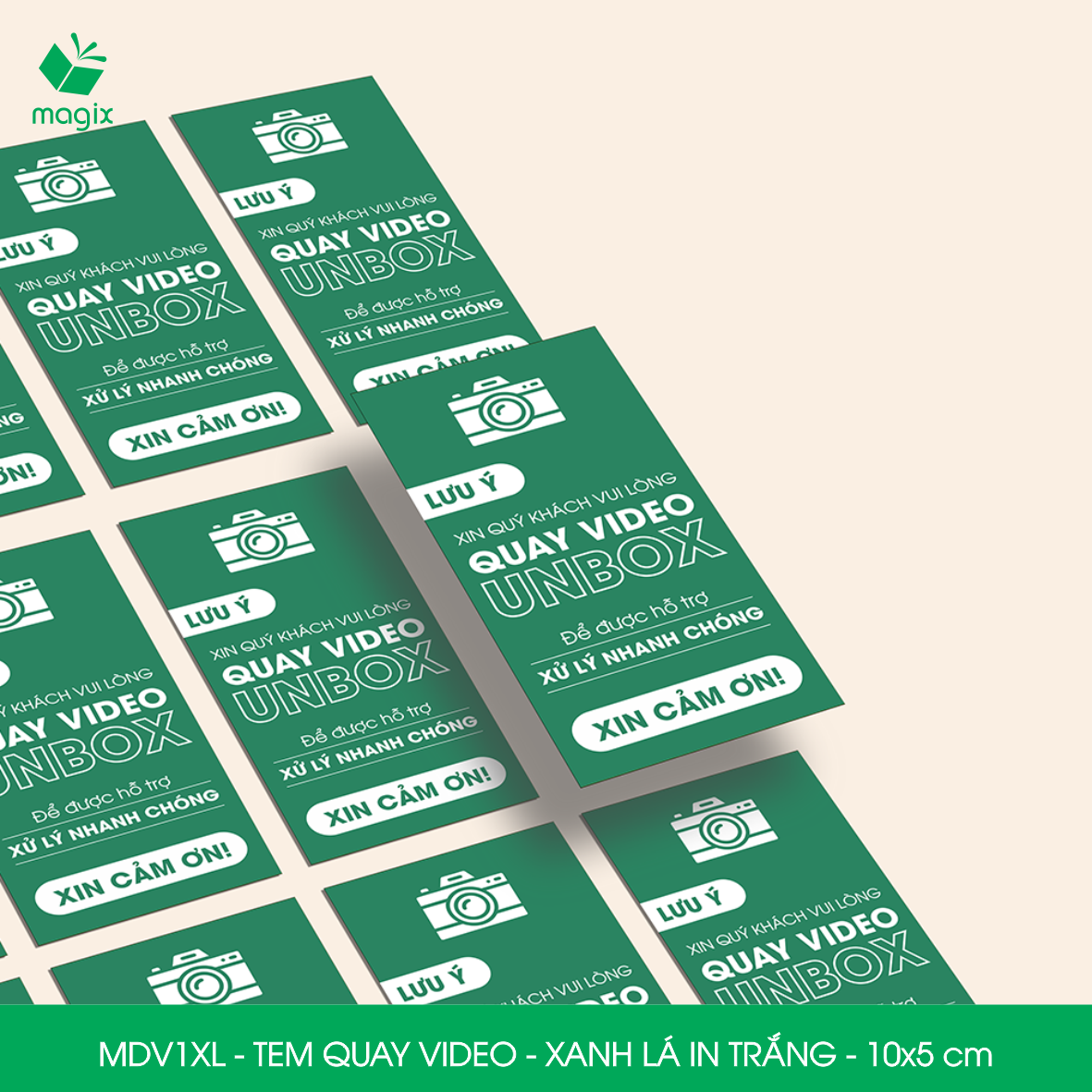 ✨50 Tem chú ý quay video trước khi mở hàng, decal dán hộp - 10x5 cm - Xanh lá in trắng - MDV1XL