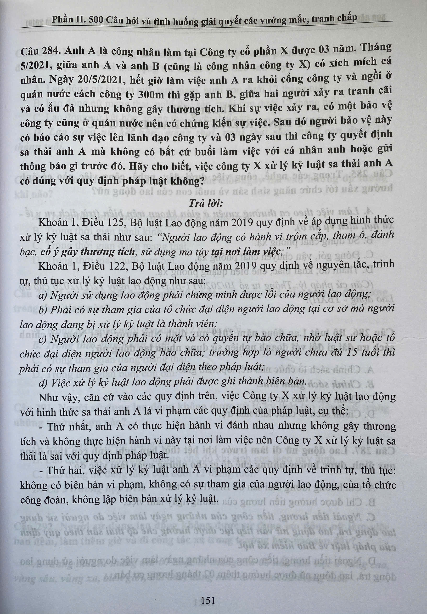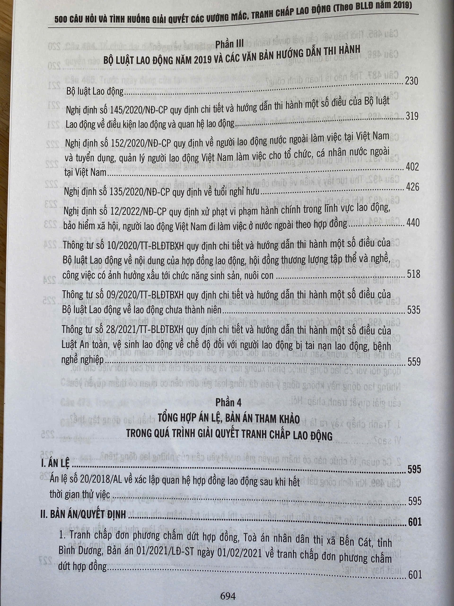 Phần II - 500 câu hỏi và tình huống giải quyết các vướng mắc, tranh chấp lao động theo Bộ luật Lao động năm 2019.