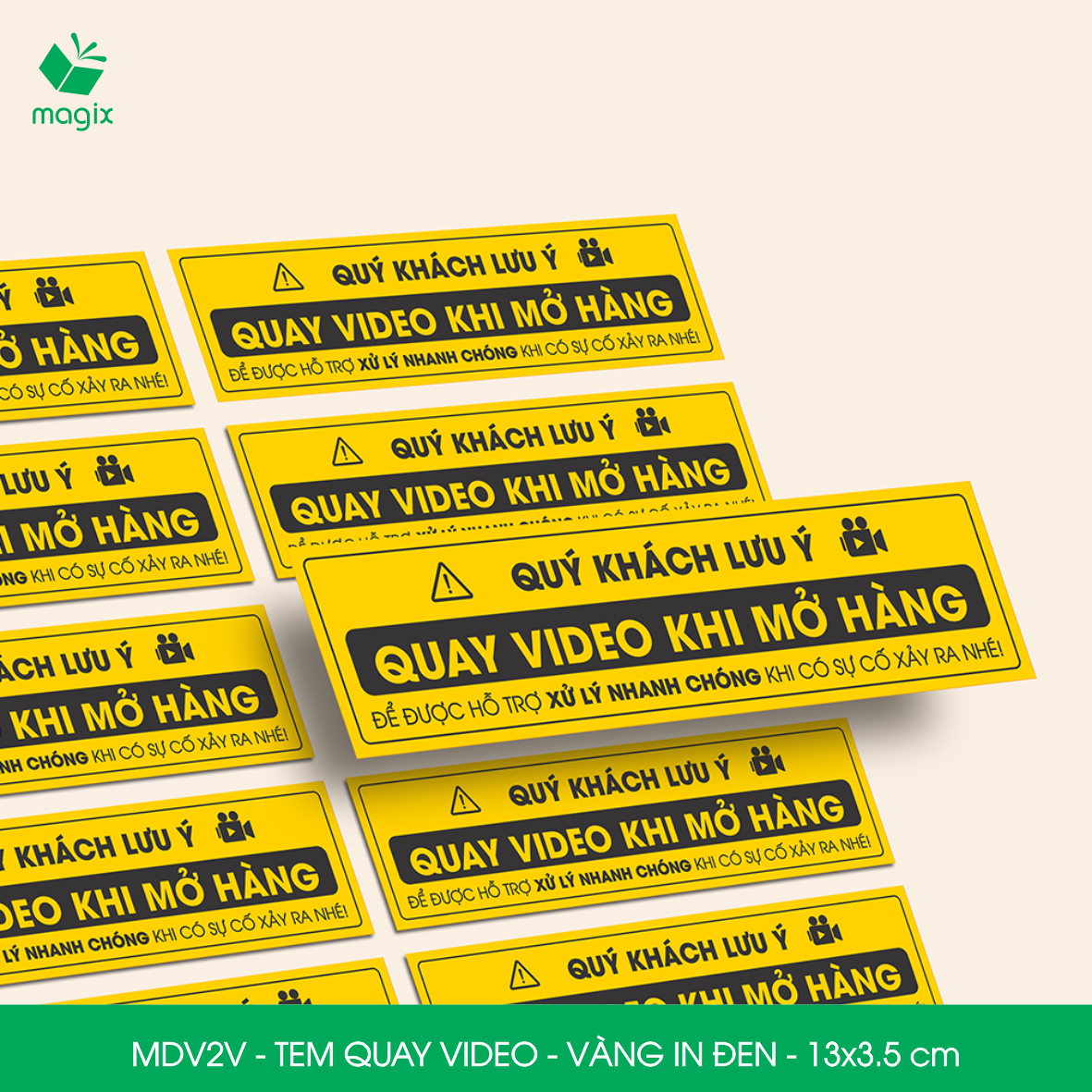 ✨500 Tem chú ý quay video trước khi mở hàng, decal dán hộp - 13x3,5 cm - Vàng in đen - MDV2V