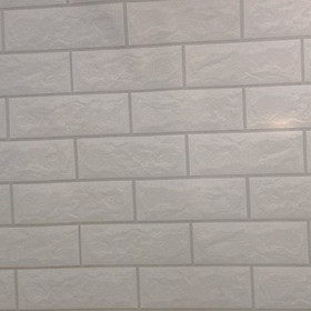 Mẫu giấy dán tường giả đá hoa cương màu trắng này có sẵn keo rồi, khách chỉ cần lột ra dán thôi. Chất liệu bền đẹp, không bám bụi, có thể lau chùi bằng xà