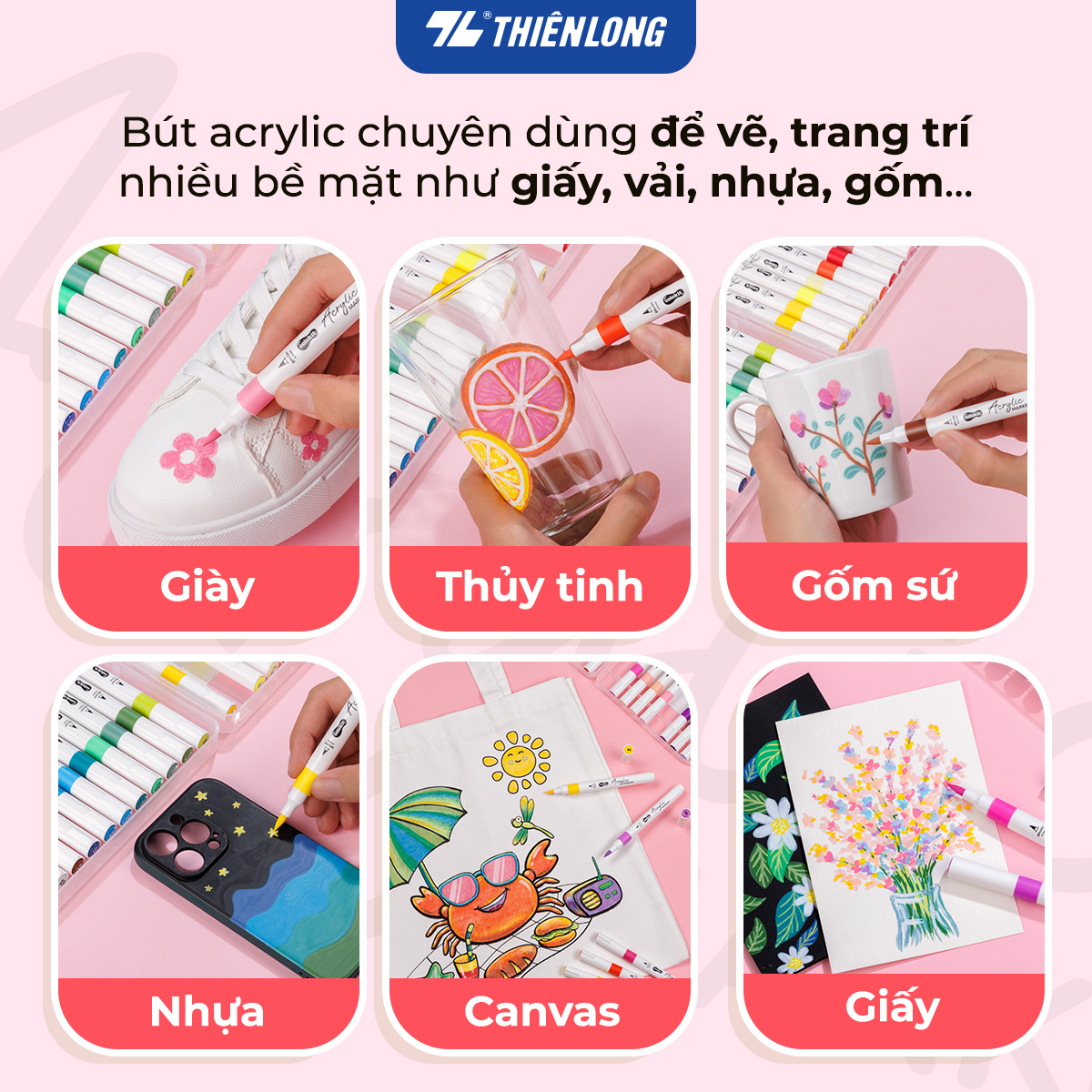 Bút sơn/bút lông màu Acrylic Markers hai đầu ngòi Thiên Long #traumaboy #thienlong