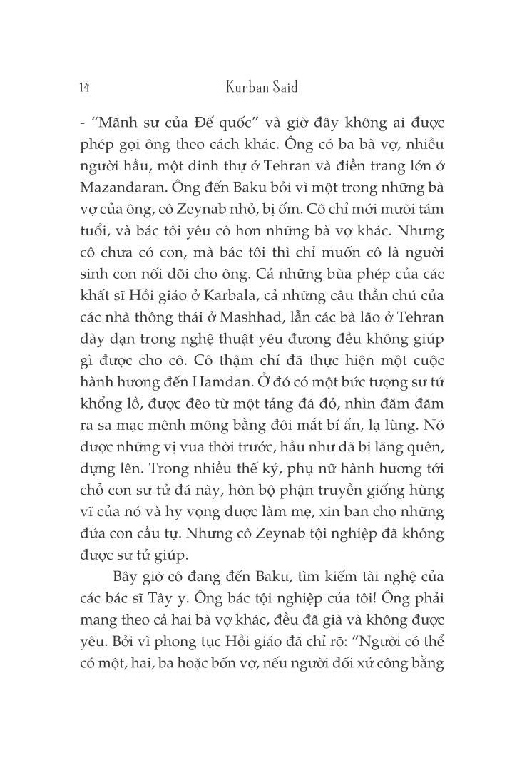 Kurban Said là bút danh của tác giả Ali và Nino khi tác phẩm lần đầu xuất bản năm 1937 bằng tiếng Đức. Đến nay, danh tính thực sự của tác giả vẫn còn là ẩn số.