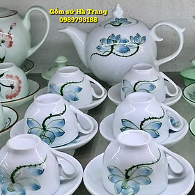 ✨Ấm chén Bát Tràng cao cấp Ấm chóp lửa hoạ tiết sen xanh
