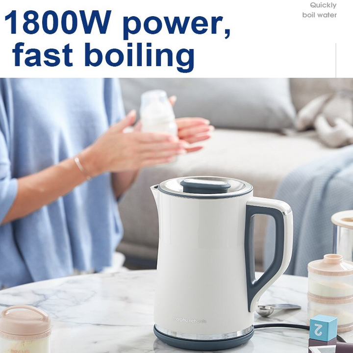 - Ấm đun nước thông minh giúp bạn đun nước nhanh chóng, lựa chọn nhiệt độ nước mong muốn có thể pha sữa, pha trà, pha cà phê, Với sản phẩm ấm đun nước thông minh Morphy Richards MR6070 bạn không cần nhiệt kế hay tốn thời gian hòa nước nóng với lạnh để có nhiệt độ mong muốn. Các bà mẹ bỉm sữa chỉ cần đun sôi nước sau đó lúc nào cần pha ấn lại mức nhiệt độ mong muốn là đã có nhiệt độ nước tiêu chuẩn để pha sữa, không lo sai nhiệt độ làm phá huỷ chất dinh dưỡng của sữa Thiết kế hiện đại, đep mắt với dung tích 1.5 lít