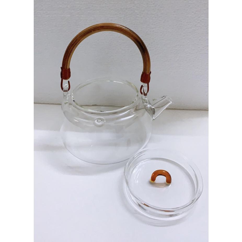 ấm pha trà thủy tinh có quai xách và nắp gỗ, lõi lọc trà Ấm chịu nhiệt nấu được trên bếp điện và bế