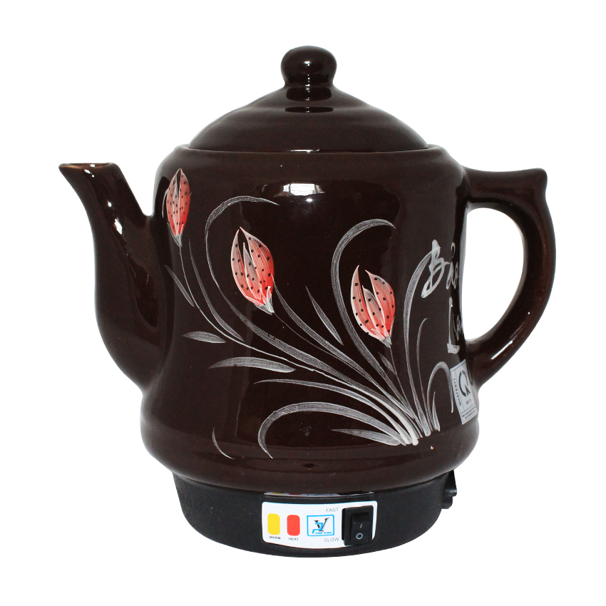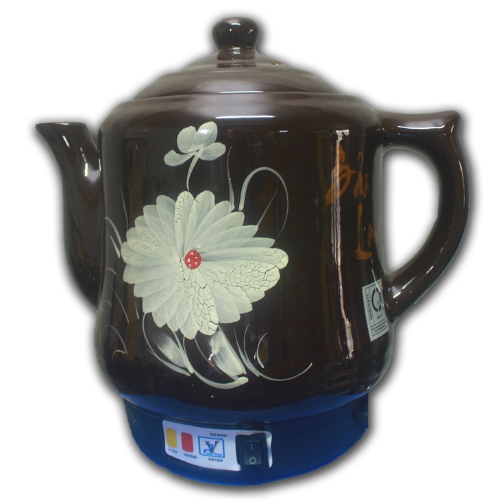 - Có chế độ giữ nước không làm cháy thuốc, dể dàng vệ sinh lau chù Cấu tạo Gốm Bát Trang nung nhiệt độ cao 1300 độ C Công suất 450W Chỉ dẫn chi tiết Cách sắc thuốc bắc bằng ấm sắc thuốc bắc bằng điện và dùng thuốc bắc đúng cách nhất Ấm sắc thuốc hoạt động rất đơn giản Bạn cứ cho thuốc vào và cho nước vào theo lời dặn của bác sĩ ( thường 3 chén hay 4 chén). Ấm thường có 2 chế độ nấu đun nhanh ( 5 tiếng ) hay ủ ( đun chậm 8 tiếng), Bạn nên chọn chế độ đun chậm để có thể chiết suất ra thuốc với chất lượng tốt nhất. Âm sắc thuốc gồm một mâm đun nước bên trong đáy ấm, nước sôi làm ra thuốc sau khoản 5 tới 8 tiếng tuỳ thời gian mà bạn chọn chế độ nấu. Lúc này đèn nguồn sáng báo hiệu chế độ đang nấu Khi nước thuốc cạn tới mức giớ hạn( tới mực của mâm nhiệt) ấm sẽ tự ngắt thường là 1 chén hoặc tới 8 phân chén. Đèn sẻ chuyển sang đèn hâm. Lúc này bạn muốn uống liền thì bạn chắt thuốc ra và uống còn không bạn chưa uống liền thì vẫn để đó để thuốc giữ ấm khi nào uống thì chắt ra. Lưu ý: đừng để lâu quá thuốc có thể cạn và thời gian để ở chế độ đèn vàng (chế độ hâm) không quá 7 tiếng. – Về siêu sắc thuốc Nên dùng siêu sắc thuốc chuyên dụng bằng đất hoặc sành, tuyệt đối không sử dụng nồi hoặc siêu bằng kim loại để sắc thuốc. Vì đôi khi kim loại phối hợp với các thành phần dược liệu tạo thành các chất gây độc cho cơ thể. – Về nước dùng để sắc thuốc Dùng nước đun chín là tốt nhất vì nước này loại bỏ các khoáng chất có thể làm mất tác dụng của một số vị thước, không nên dùng nước máy hoặc nước giếng. – Về cách uống thuốc cần chú ý một số điều sau đây – Nên uống thuốc lúc bụng trống cho thuốc dễ hấp thụ, không dùng chung với trứng, sữa, pho mát. – Không uống chung với nước giải khát có gas, nước ép trái cây, nước trà, các loại chè đậu, nước canh thịt, nước rau muống. – Không dùng các chất kích thích như rựu, thuốc lá, các chất cay nóng – Không ăn những thức ăn cứng, khó tiêu, giúp thuốc dễ hấp thụ – Chú ý kiêng ăn theo lời khuyên của thầy thuốc.