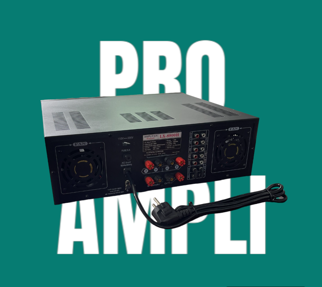 Mua tại TiktokAmply Karaoke Bluetooth Công Suất Lớn 1300W Zenbos LX-8800H, 20 Sò Đại THÔNG SỐ KỸ THUẬT: - Mạch bảo vệ loa - Cổng ra sub - Chức năng kết nối bluetooth với các thiết bị không dây - Số kênh: 2 - Công Suất: 650W/kênh - Công Suất Thực: 1300W - Số Sò: 20 - Echo số nhiều chức năng - Mạch thủy tinh sợi - Tăng phô 25A cho công suất lớn,tín hiệu ổn định - Trở Kháng: 8ohm - Kích Thước: 42 x 40 x 13 cm - Điện Áp Sử Dụng: 220V/50Hz - Trọng Lượng: 16kg ĐẶC ĐIỂM NỔI BẬT: