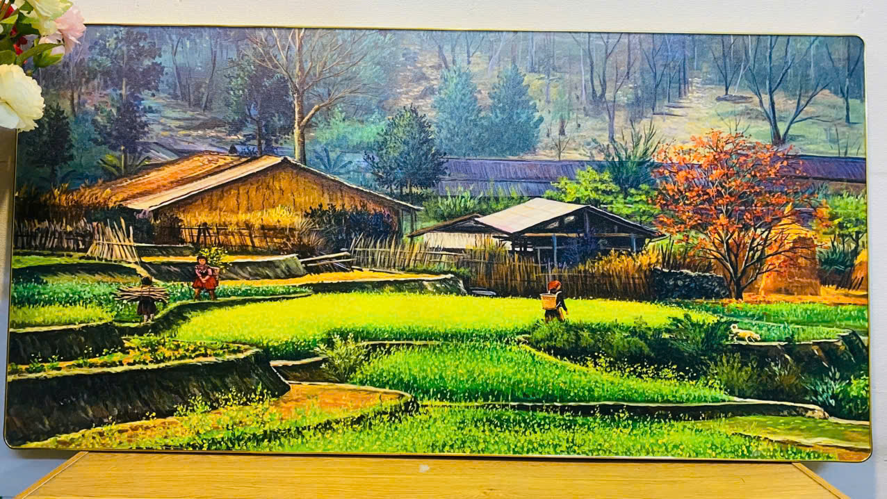 Tranh treo tường làng quê Việt Nam yên bình - Kích thước của tranh : Kích thước : 45x70cm - 50x80cm - 60x100cm - 70x120cm - Chất liệu : Tráng gương - Khách hàng muốn