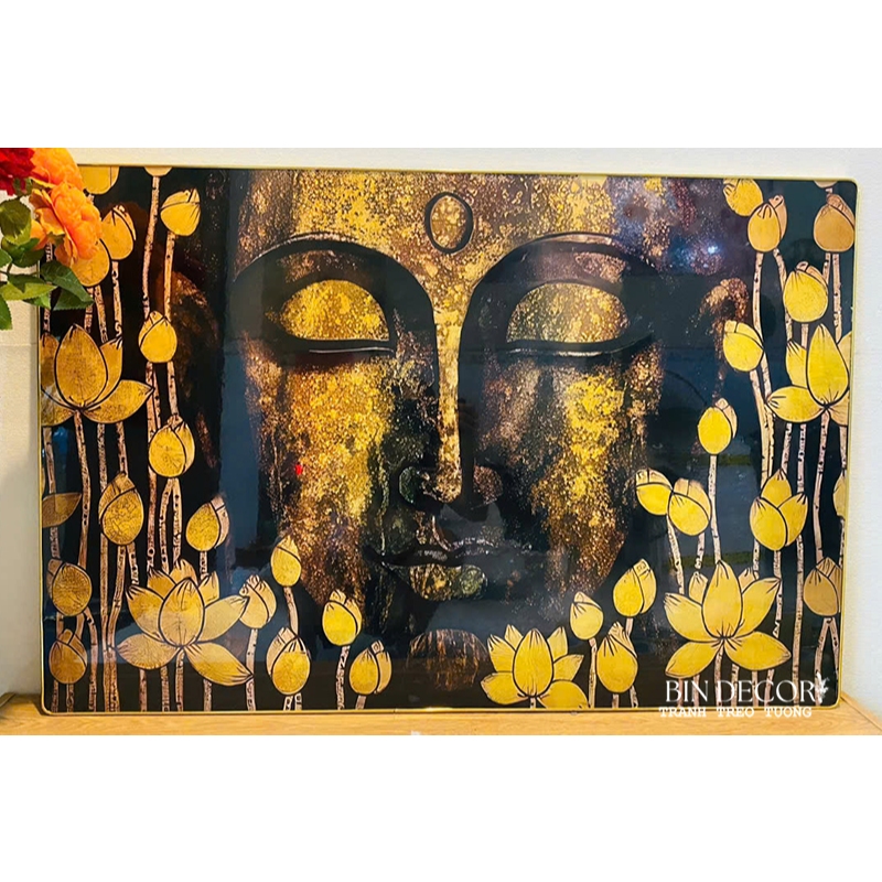 Tranh treo tường ĐỨC PHẬT - Kích thước của tranh : Kích thước : 40x60cm - 50x75cm - 60x90cm - Chất liệu : Tráng gương - KIM SA - Khách hàng muốn thay đổi sản