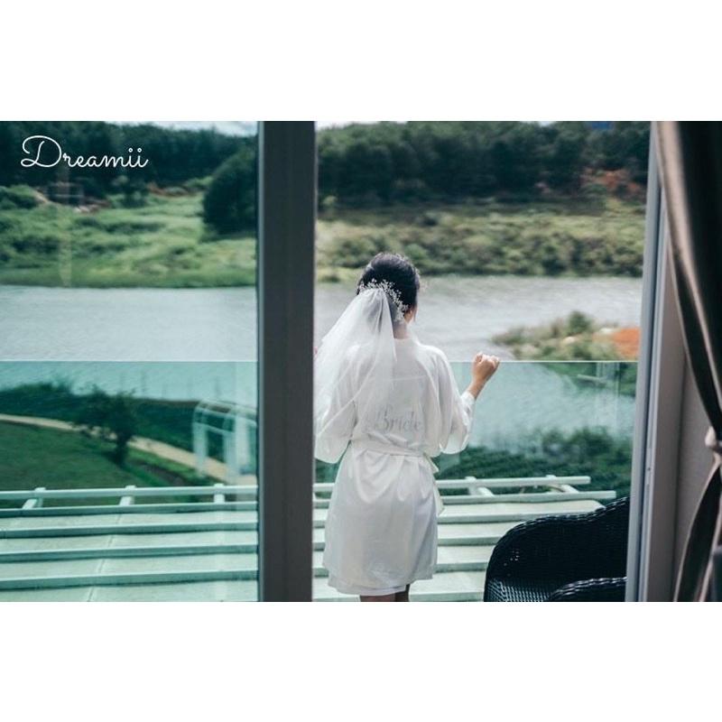 Với thiết kế ngọt ngào, một bộ choàng không thể thiếu trong bộ ảnh của cô dâu với chiếc đai thắt ngang tạo điểm nhấn của bộ đồ ngủ cùng với chữ được thêu cẩn thận ở sau áo.