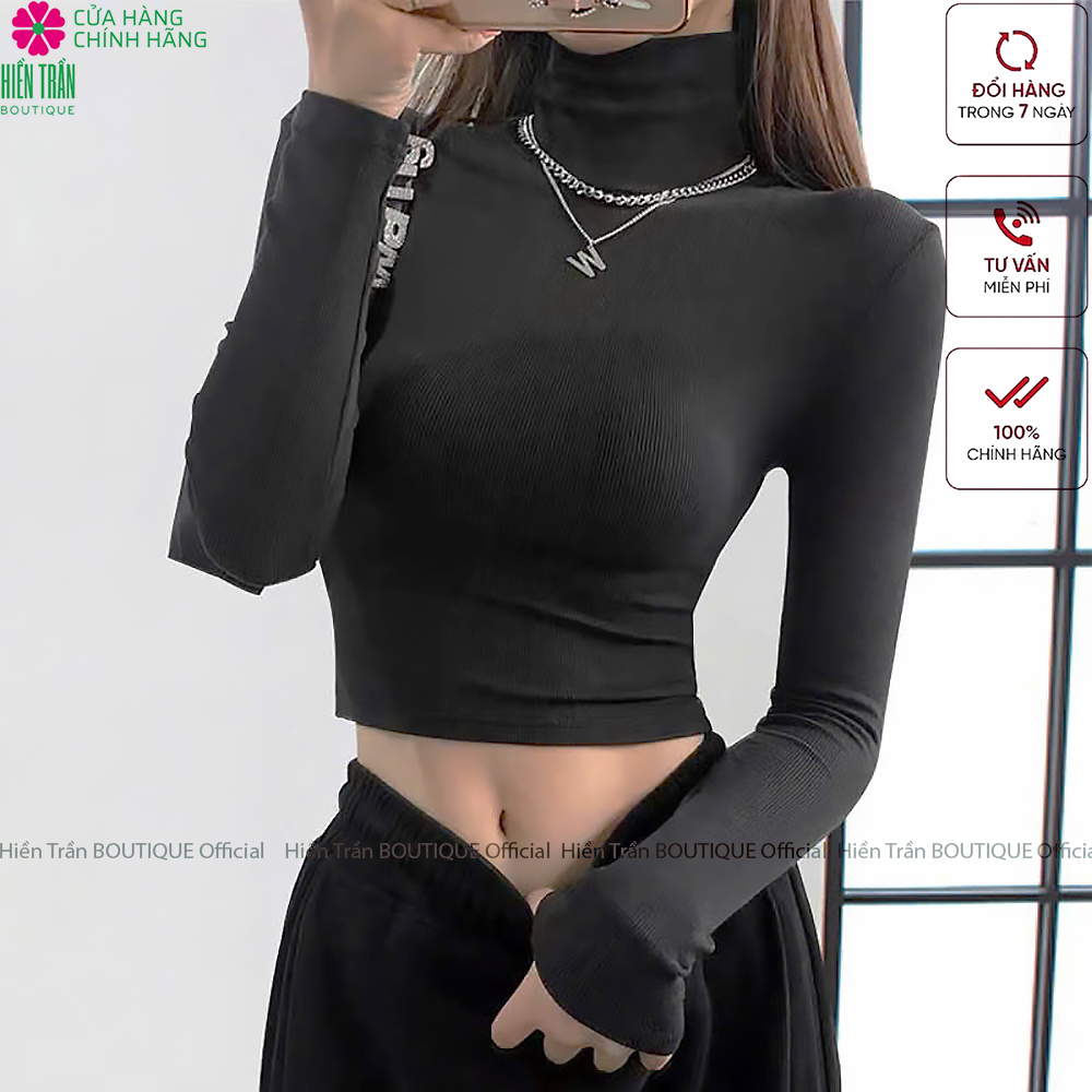 Áo croptop dài tay nữ Hiền Trần BOUTIQUE là sản phẩm cổ lọ được làm từ chất vải cotton co giãn, giữ nhiệt tốt và ôm sát cơ thể, mang đến phong cách cá tính
