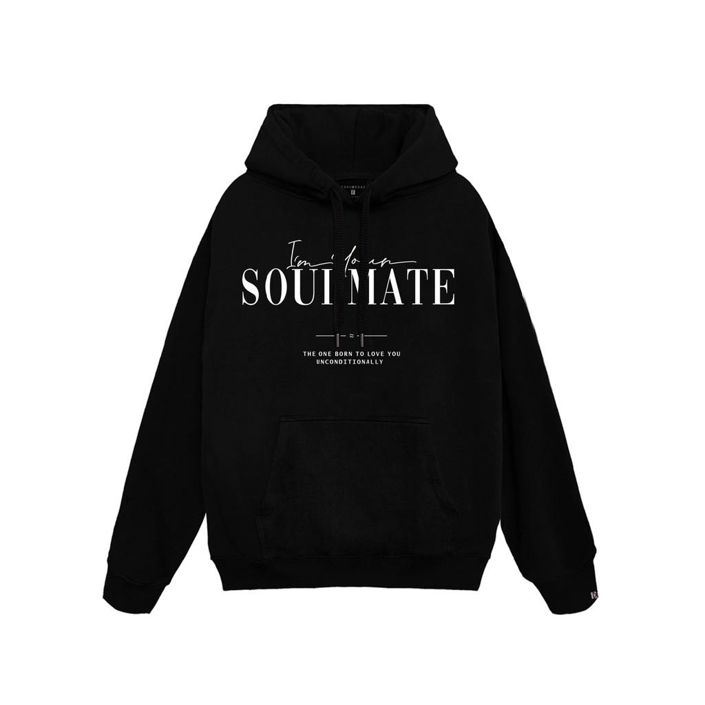 SOULMATE Hoodie Màu: Đen Size: Freesize Chất Liệu: 70% Cotton, 30% Polyester Hướng dẫn giặt ủi: + Phải lộn quần áo từ ngoài vào trong trước khi giặt để bảo quản hình in + Giặt