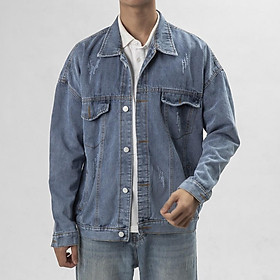 Thông tin chi tiết của sản phẩm áo khoác jean nam màu xanh cơ bản cào xước - Xuất xứ: Việt Nam - Chất liệu : Jean dệt cực chuẩn, không nhăn, có độ bền