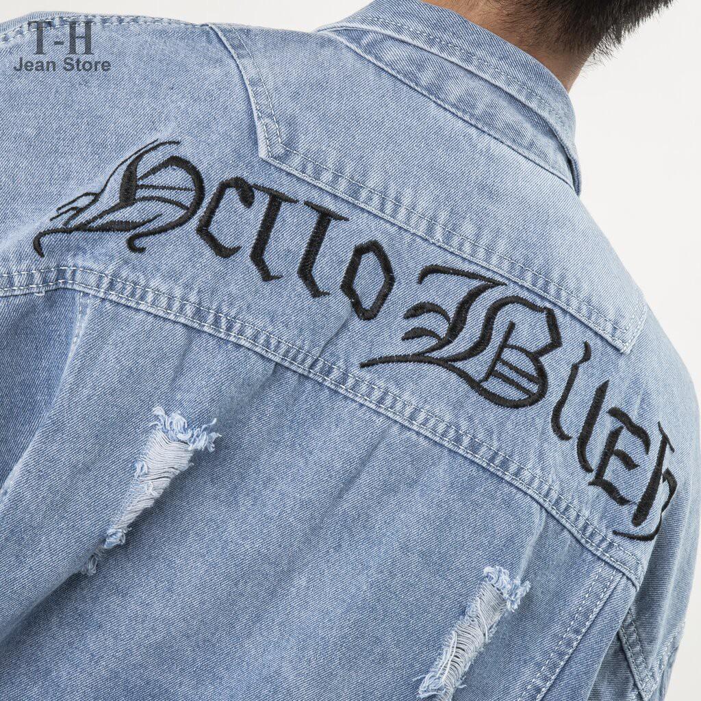 ✨Áo jean nam rách thêu chữ hellobicht phong cách