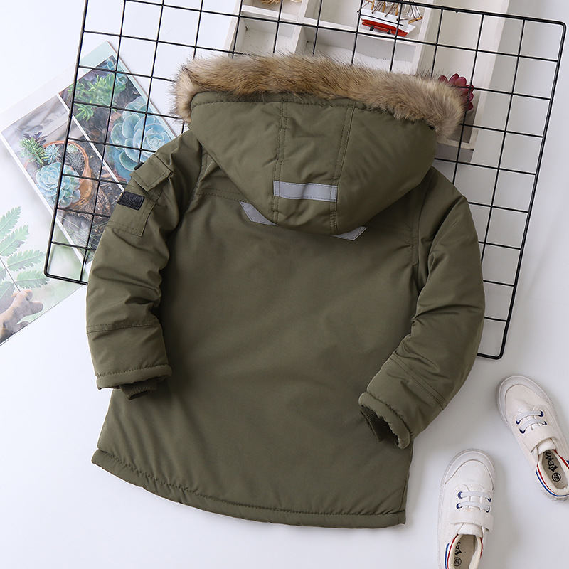 Áo khoác bé trai lót lông, Áo Parka cho bé 5-14 tuổi mũ lông túi hộp có mũ vành lông và khóa kéo tiện lợi