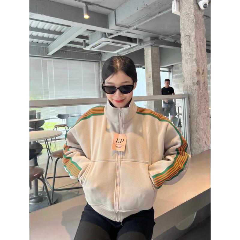 Áo khoác nữ nỉ chống nắng Croptop 3 Sọc Dáng Rộng Mũ To 3 sọc là sự lựa chọn hoàn hảo cho các cô gái yêu thích phong cách thời trang năng động và cá
