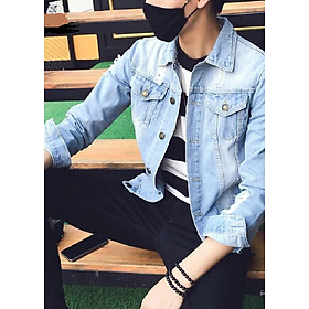 Áo khoác Jean nam tua rua trắng . Thiết kế cực phong cách, tinh nghịch Kết hợp chiếc áo khoác này với đôi giày thể thao nam và mắt kính thời trang Thiết kế khéo léo,
