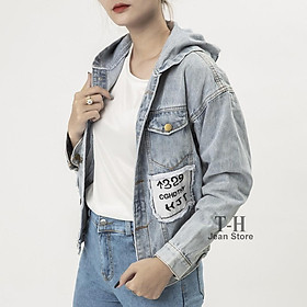 Mua tại TiktokThông tin chi tiết của sản phẩm áo khoác jean nữ có mũ đắp bạ thêu