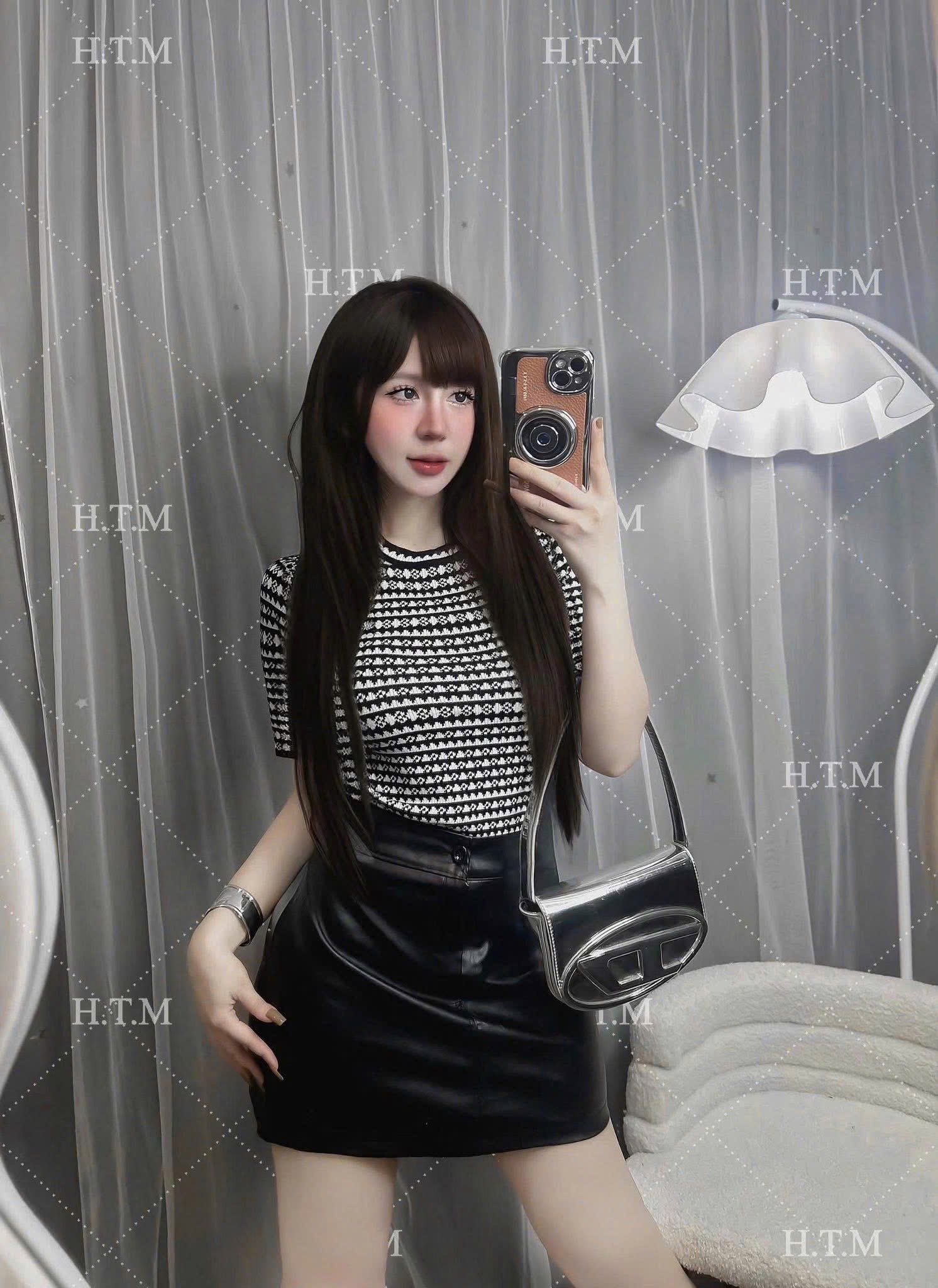 Chất liệu len gân co giãn, không bai, không xù Freesize chị em mặc thoải mái từ 40Kg đến 57kg Dài: 49 cm, Ngực/ Eo: 64 cm, Dài Tay: 26cm Thiết kế cut out phần