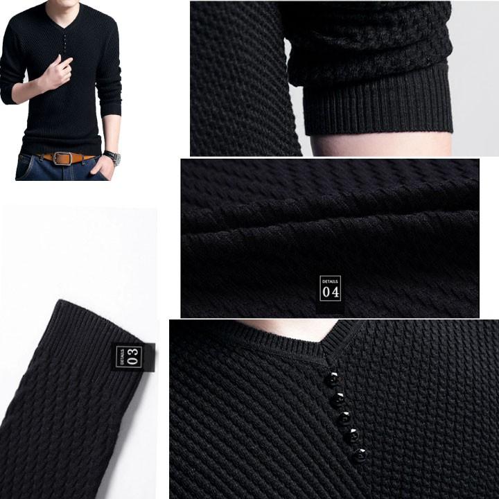 Áo len nam cổ tròn họa tiết hàng Quảng Châu xịn, mềm mại, cúc cổ *CHẤT LIỆU len lông cừu