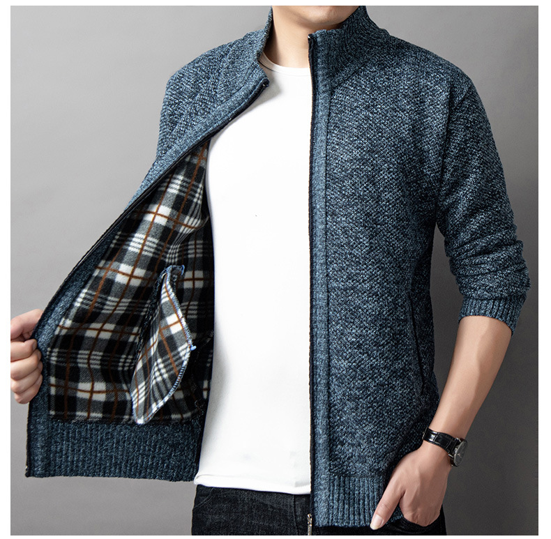Áo len cardigan nữ cổ cao, dệt kim dày dặn, có 2 khóa kéo