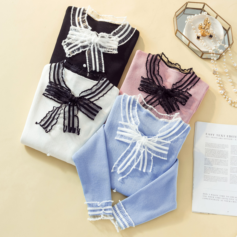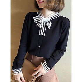 Áo len cổ tròn dài tay đính nơ cho nữ