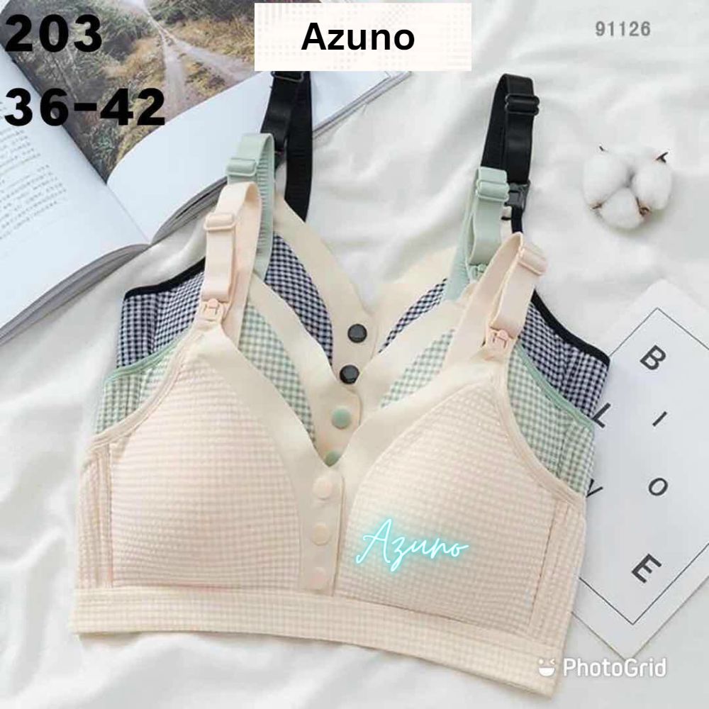Áo Lót Bầu - Áo Ngực Cho Con Bú Kẻ Cotton Azuno A15 Chống Chảy Xệ Không Gọng Mút Mỏng Cao Cấp