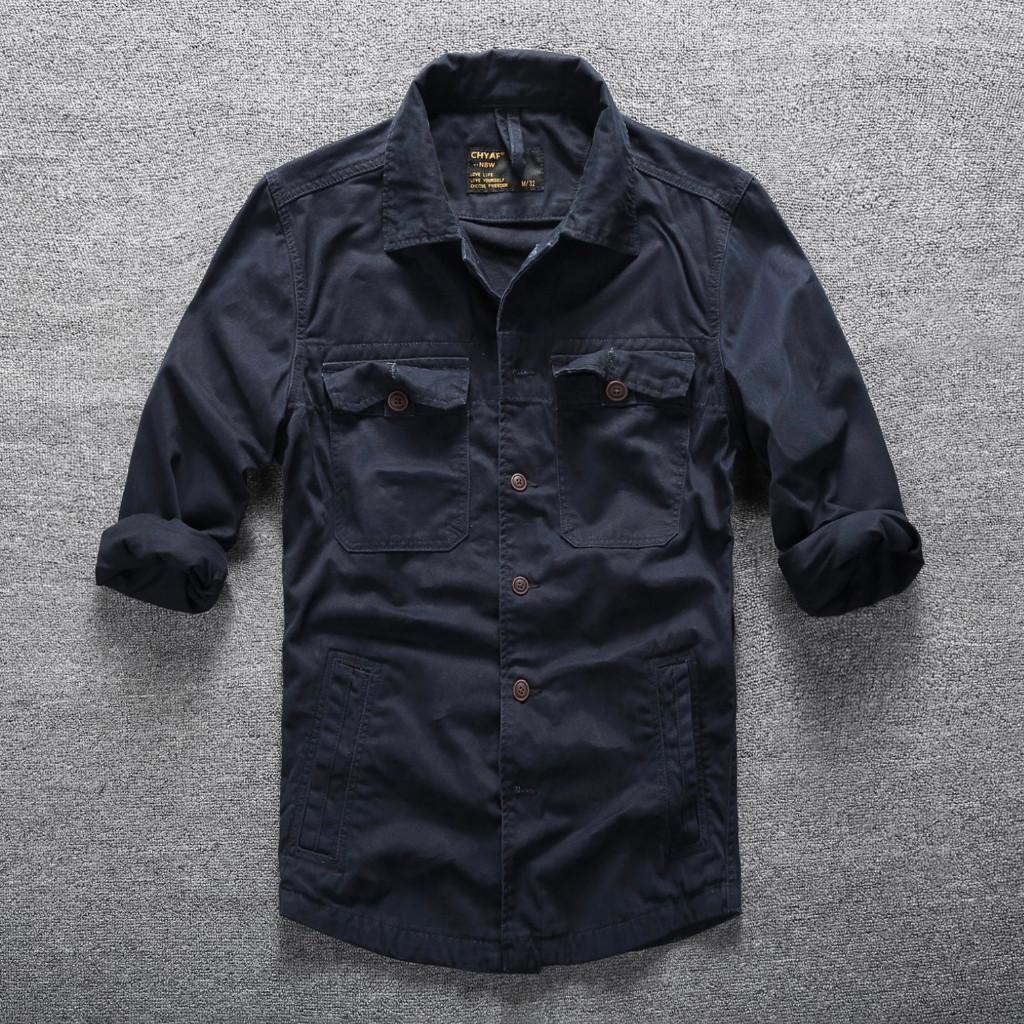 Áo sơ mi túi hộp phong cách Retro lính_dã ngoại Áo sơ mi Wild Casual Màu đang hot lắm ạ Chất kaki được wash acid cực bụi , phom chuẩn mặc rất đẹp ạ Size:
