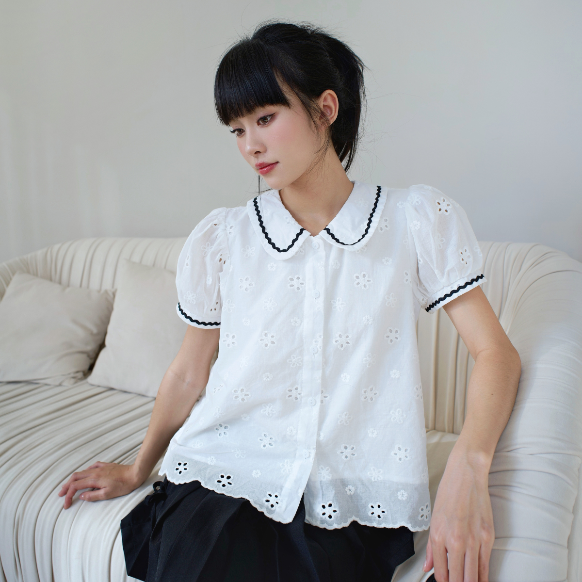 CHI TIẾT SẢN PHẨM - Sản phẩm : Áo sơ mi kiểu tay phồng dễ thương nữ tính thích hợp công sở Garnet Miều Est.2013 - Chất liệu : Xô Ren - Màu sắc :