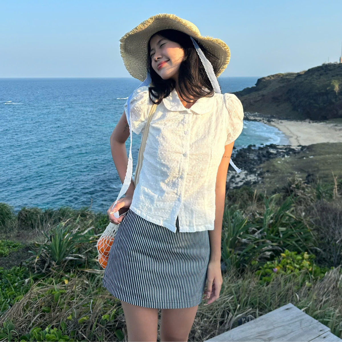 CHI TIẾT SẢN PHẨM ✿ Sản phẩm : Áo sơ mi tay ngắn viền ren dễ thương nữ tính cột nơ sau dễ phối đồ Jenni Miều Est.2013 ✿ Chất liệu : Xô Ren ✿