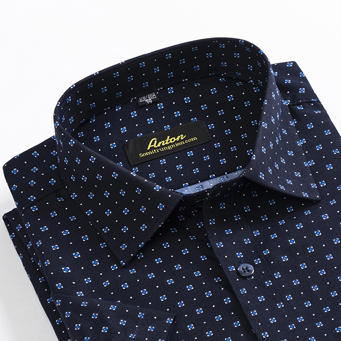 ✨Áo Sơ Mi Nam Công Sở Trung Niên thương hiệu Anton Ngắn Tay màu Xanh Tím Than Vải Cotton Họa Tiết Hoa Nhí – X809