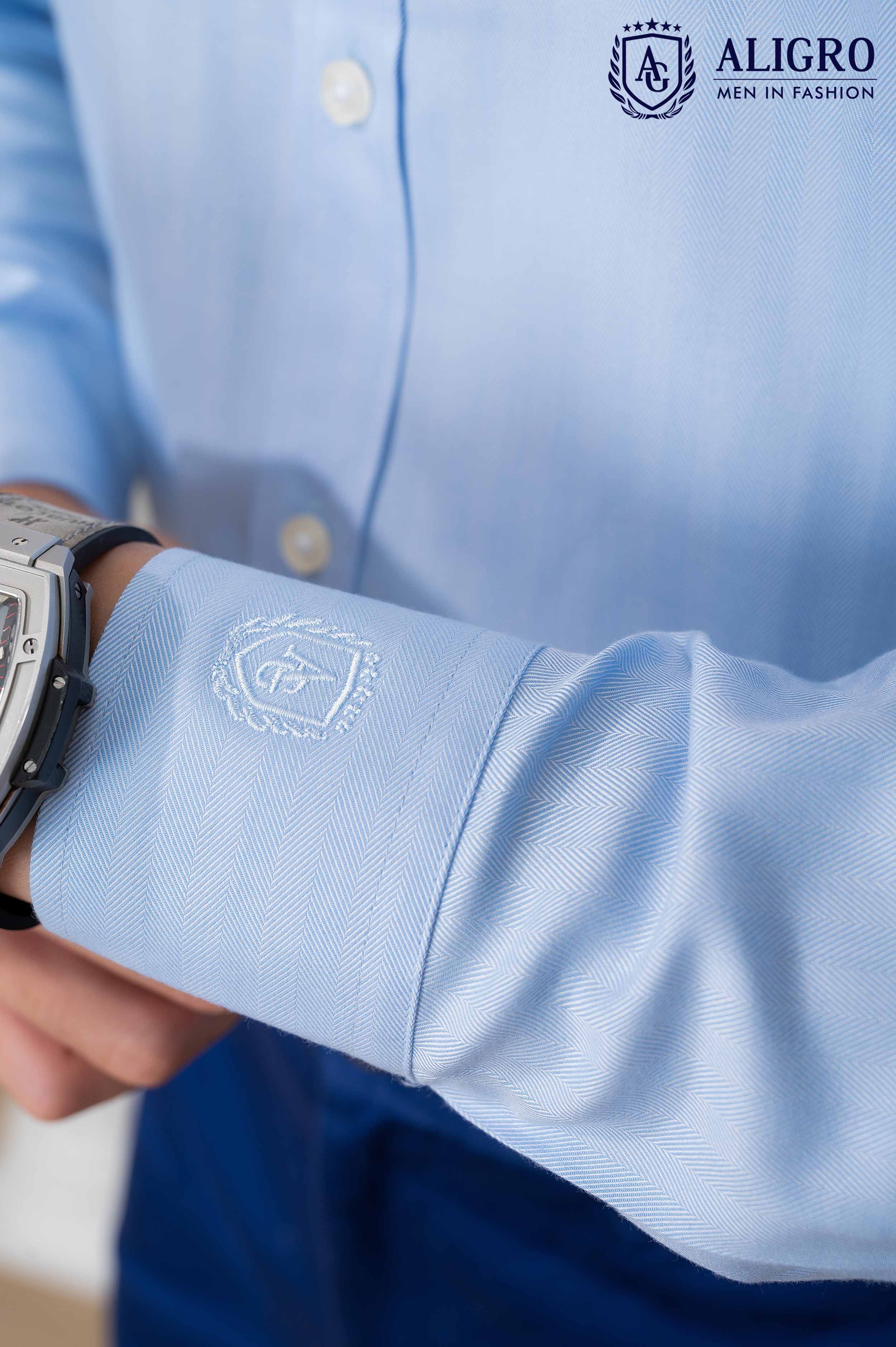✨Áo sơ mi nam dài tay ALIGRO 100% chất bamboo Màu Xanh phối cổ bẻ dáng ôm body ALGS214
