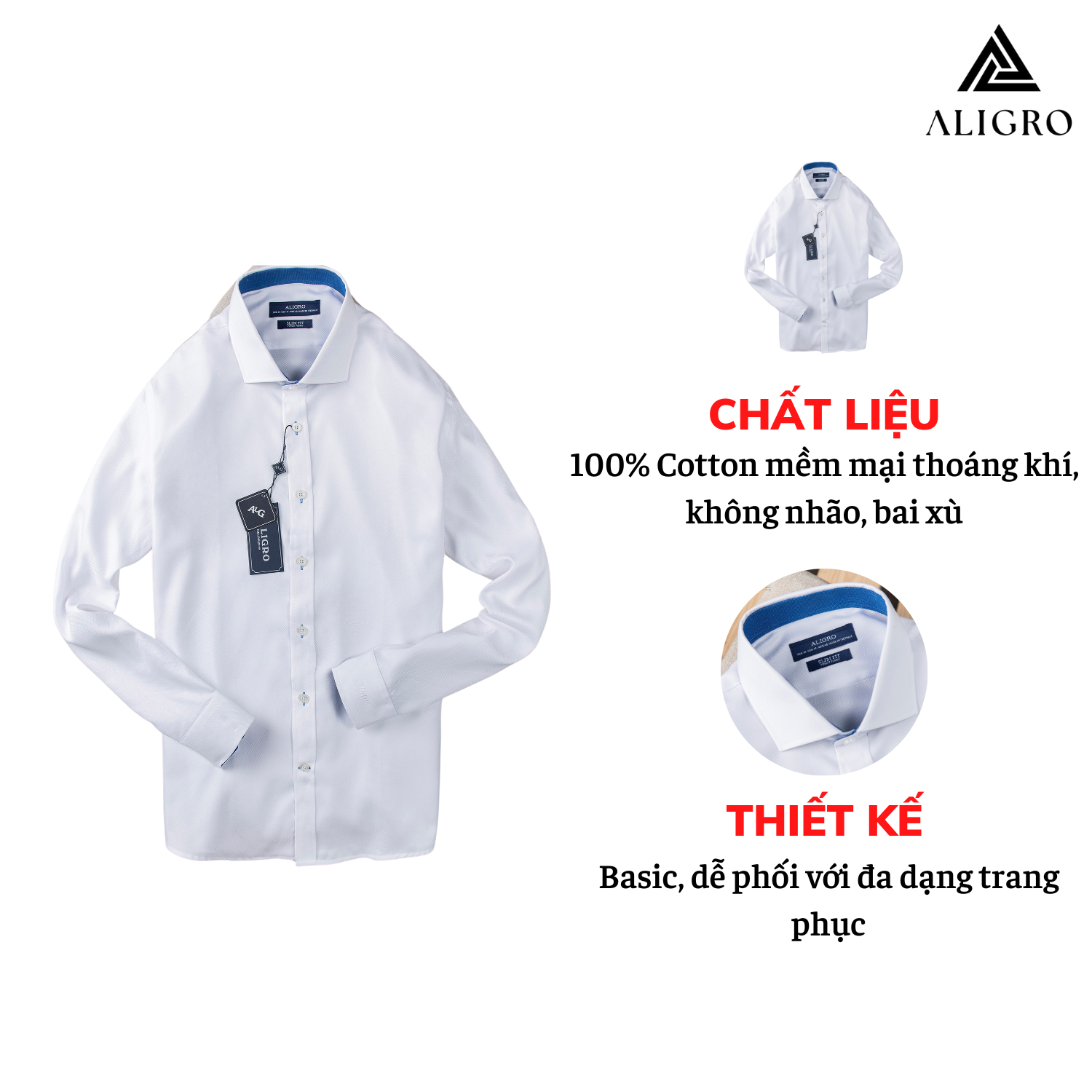 ✨Áo sơ mi nam dài tay ALIGRO chất cotton trắng phối cổ, cổ bẻ dáng ôm body ALGS195