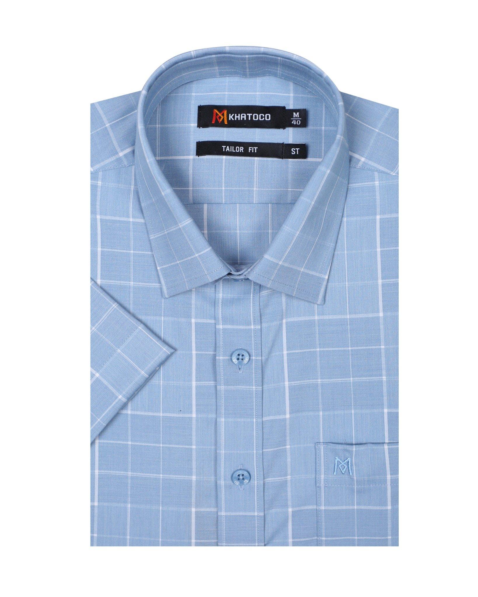 Áo sơ mi nam tay ngắn lai ngang – Khatoco - Mã hàng: A1MN538T2 - Chất liệu: 75% Polyester + 22% Viscose (Bamboo) + 3% Spandex → Vải mềm mại, thoáng mát, co giãn nhẹ,