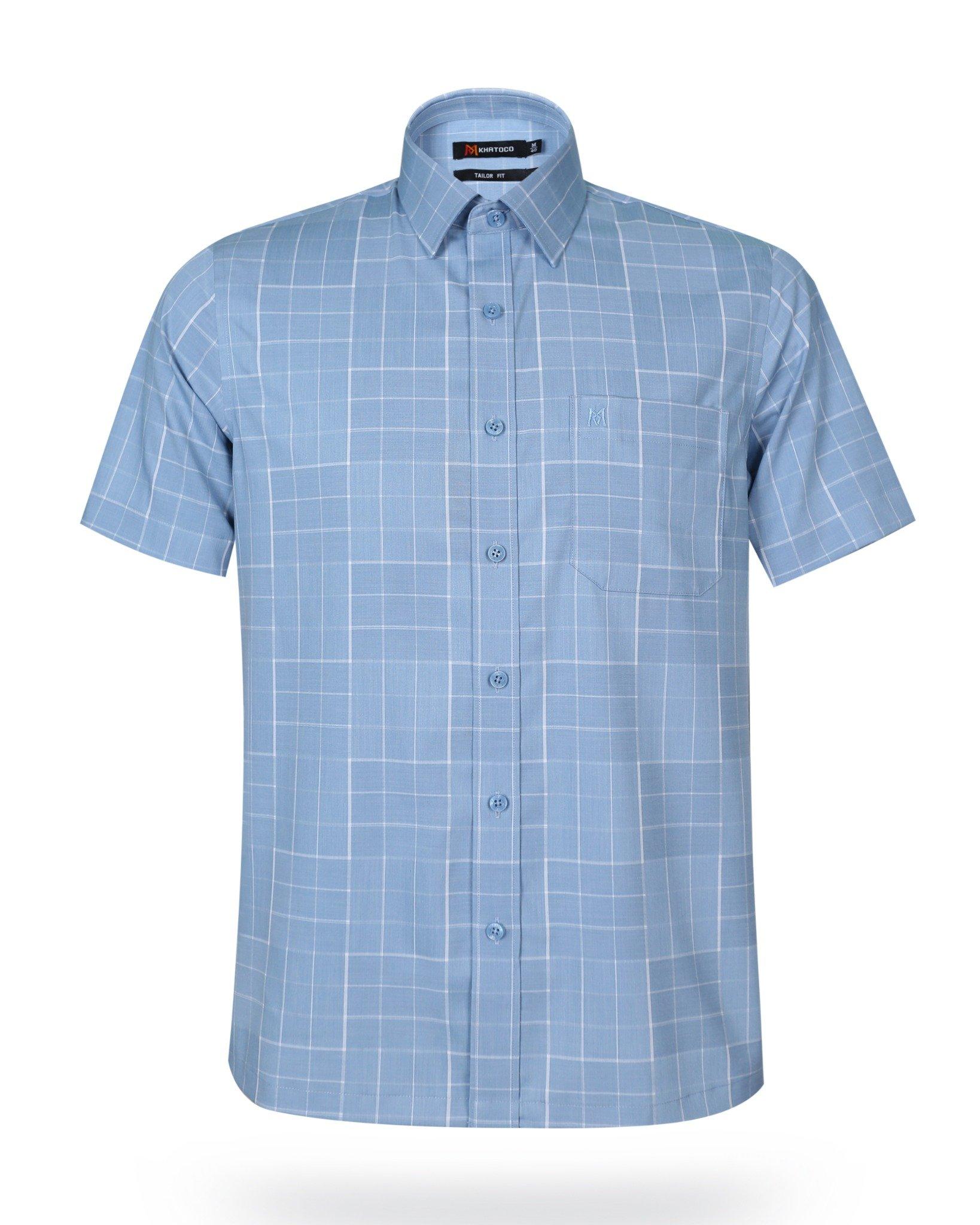 Áo sơ mi nam tay ngắn lai ngang – Khatoco - Mã hàng: A1MN498T2 - Chất liệu: - 77% Polyester (Microfiber) - 19% Viscose (Modal) - 4% Spandex → Vải cao cấp, mềm mại, thấm