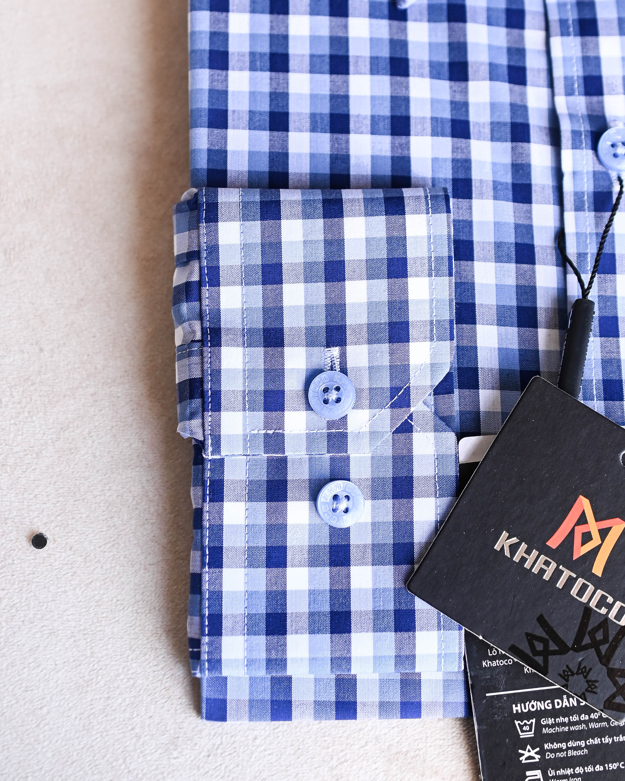Mô tả sản phẩm – Áo sơ mi nam tay dài Khatoco Chất liệu cao cấp - 88% Polyester (Superfine): Giữ form chuẩn, hạn chế nhăn, bền màu. - 12% Rayon: Mềm mại, thoáng mát,