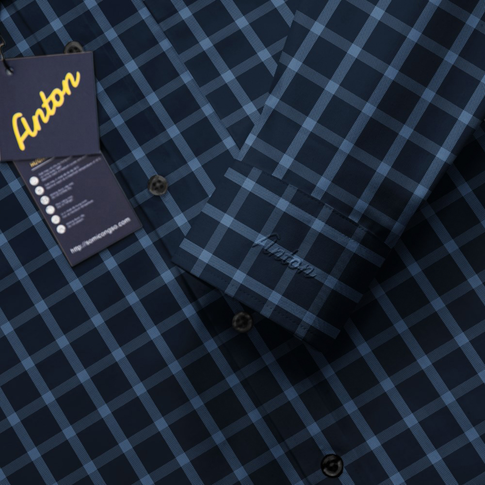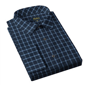 Áo Sơ Mi Nam Công Sở Trung Niên Thương Hiệu Anton Dài Tay Vải Sợi Tre Xanh Dương Kẻ Caro Chìm AT203