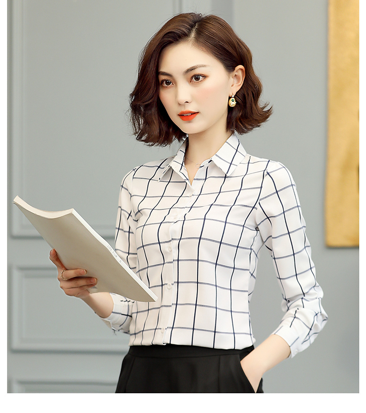 - Sơ mi nữ kẻ caro dáng dài Ab05 được thiết kế thanh nhã với kiểu dáng trẻ trung - Áo sơ mi nữ, sơ mi dáng dài được may từ chất liệu cao cấp