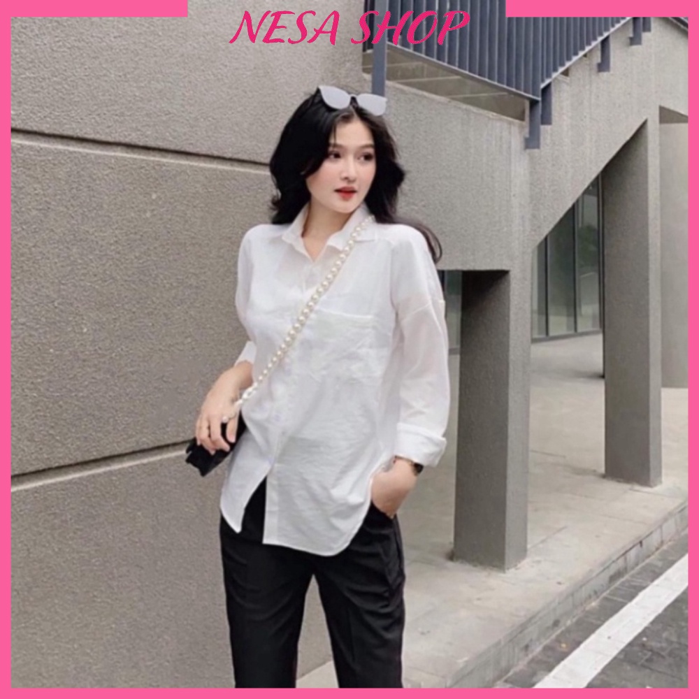 Áo sơ mi nữ form rộng bigsize thiết kế kiểu trẻ trung phá cách chất liệu mềm mát NeSa Shop THÔNG TIN SẢN PHẨM 1.Tên sản phẩm: Áo sơ mi nữ dài tay form rộng,